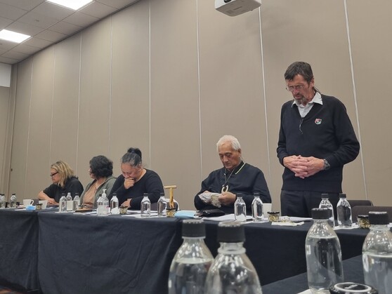 Elections for the newly formed NRMW working group are held - elected for Te Kuha representatives are Nicki Lambert and Neuton Lambert, Te Waimako representatives are Tina Wagner and Te Ori Paki, Te Toi Kura representative Kara Dentice, and Waikaremoana Tribal representative is Malcolm Tuahine.